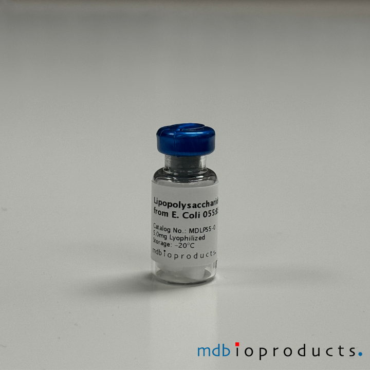 MD Bioproducts provides lyophilized lipopolysaccharide (LPS) for in vivo and in vitro use. The LPS is isolated from Escherichia coli by a modification of the phenol extraction method of Westphal and Jann. This material has been extracted from bacterial cells walls of E. coli 055:B5. The endotoxin has been futher purified to remove traces of residual protein and nucleic acids, producing highly purified LPS. The LPS is essentially free of nucleic acid and protein and is chemically characterized with respect to their phosphate and KDO(2-keto-3-deoxyoctonate) contents. The highly purified LPS has been then re-extracted by the method of Manthey and Vogel to eliminate residual protein contamination.