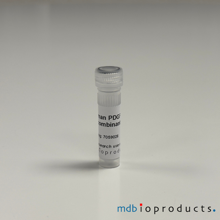 Platelet-derived growth factor (PDGF) is a dimeric glycoprotein composed of two disulfide-stabilized polypeptide chains, A and B, forming heterodimers (PDGF-AB) or homodimers (PDGF-AA and PDGF-BB). PDGF signals through receptor tyrosine kinases PDGFRα andPDGFRβ and activates pathways involving MEK/ERK, EGFR, Src, and PI3K/AKT. It is a potent mitogen for mesenchymal cells such as fibroblasts, glial cells, and vascular smooth muscle cells. It is implicated in atherosclerosis, glomerulonephritis, cancer, and vascular smooth muscle cell contraction. PDGF-AA regulates VEGF expression in non-small cell lung carcinomas and mediates the proliferation and differentiation of oligodendrocyte progenitor cells. PDGF-AA is also used to differentiate human pluripotent stem cell-derived neural progenitor cells into oligodendrocyte precursor cells.